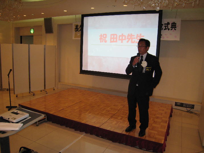 このたびのご定年を控え、思い出と今後の抱負を述べる田中先生。